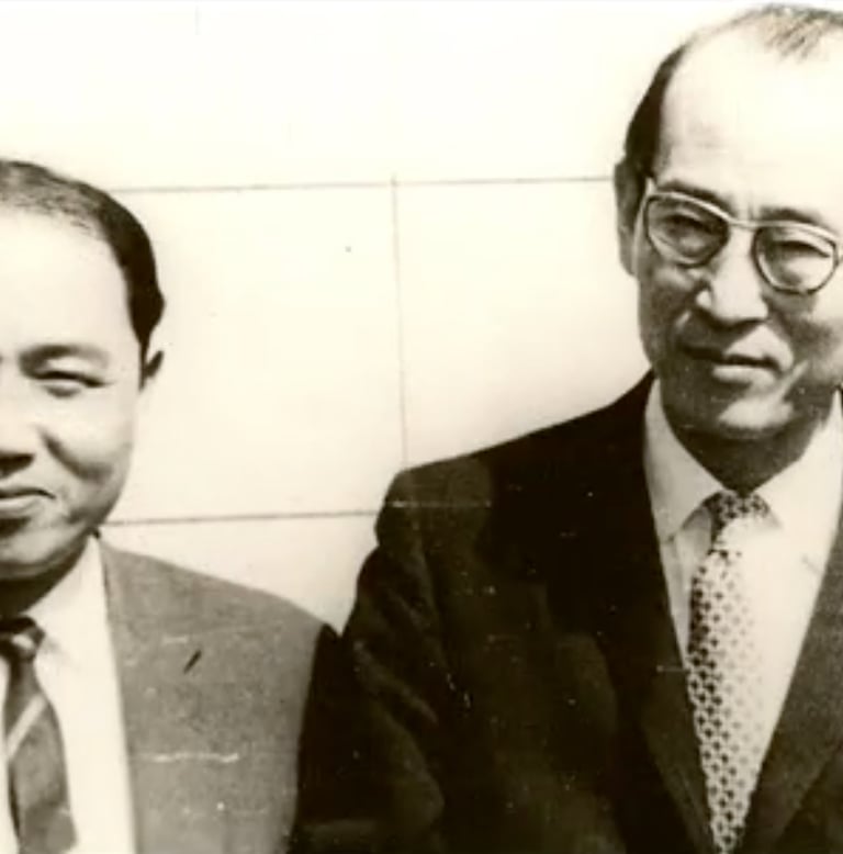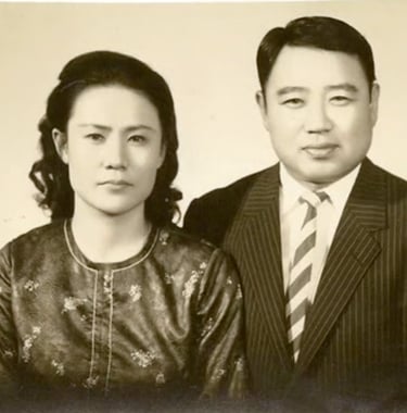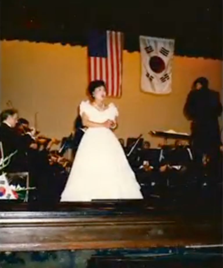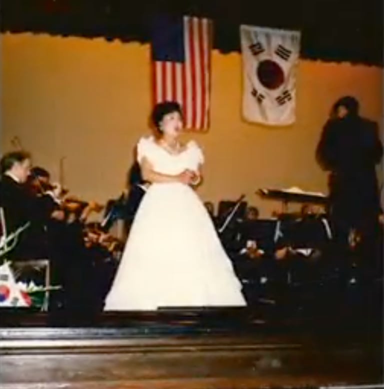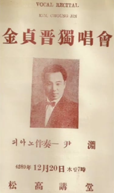 1. Top left - Oh Se Kon (mother) and Kim Chung Jin (father) shortly after their wedding in 1969. 2. Center - One of my father's concerts as tenor vocalist in Korea and overseas. 3. Bottom left - My father and his mentor (right), Ahn Ik-Tae, who composed Korea's national anthem or "aeguka". 4. Bottom right - My father conducting the national choir and performing "aeguka" for the first time shortly after Korea's Liberation in August 15, 1945. 5. Top right - My aunt (father's sister), Kim Jung Min, and father performing at the 17th L.A. Korean Orchestra concert commemorating Korea's Liberation Day.